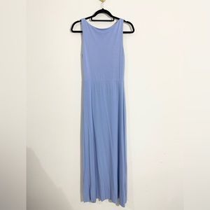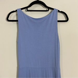 Bailey 44 midi dress. Sleeveless, crewneck. Crossover/twist top detail with small cutout detail. Relaxed fit. Light periwinkle blue color. Size medium. Subtle stain on front, see photos. Otherwise, in excellent preowned condition. Measurements while flat approximately 15.5" bust, 13" waist, and 51" length.