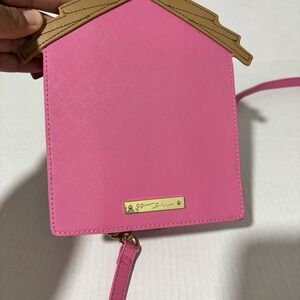 NWOT! Betsey Johnson "DOG BEACH HOUSE" Pink Crossbody Purse Bag Golg Chain