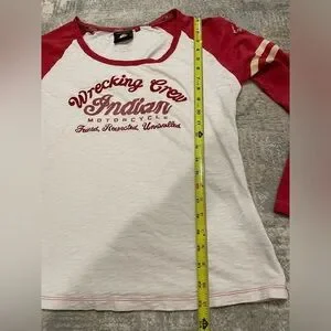 Genuine Indian Motorcycle Wrecking Crew Red/White Long Sleeve Size L Embroidered