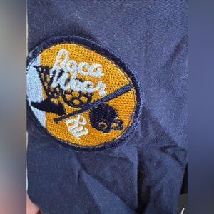 Y2K vintage Roca Wear navy blue button up shirt with yellow accents