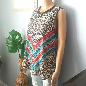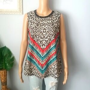 Point Zero Western Boho Animal Print Mixed Media Top SZ L