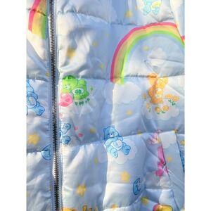 Care Bears Puffer Jacket Rainbow Clouds Stars Quilted Full Zip Blue Sz LG