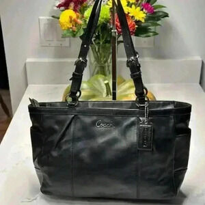 Coach Gallery East West Leather Tote Shoulder Bag Black