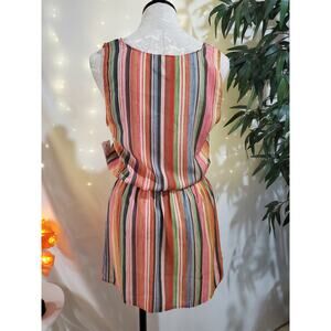 BECCA by Rebecca Virtue Smocked Sleeveless Dress Womens Size M Tie Multi Stripe