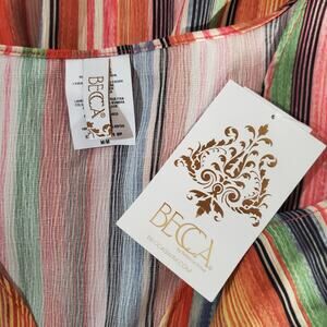 BECCA by Rebecca Virtue Smocked Sleeveless Dress Womens Size M NWT Multi Stripe