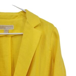 Women's Ruched Sleeve Linen Blazer from Michael Michael Kors in Yellow.