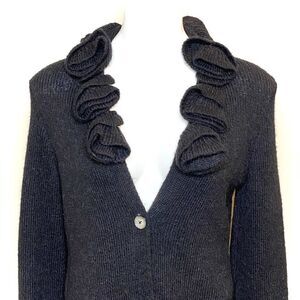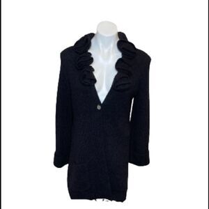 Soft Surroundings black alpaca blend rosette cardigan sweater size M