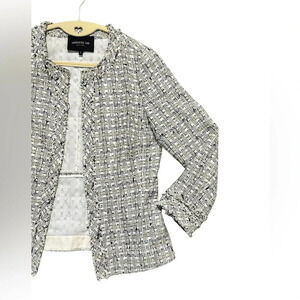 Lafayette 148 Noelle Tweed Boucle Jacket Black White Sz 6