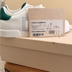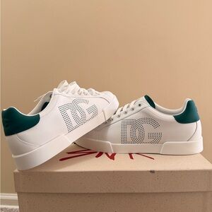 these iconic Portofino sneakers come with new details. Featuring the perforated DG logo, they come crafted in calfskin.