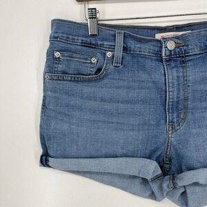 Levi's Denim Shorts Women's 32 Blue Mid Length Cuffed Cotton Blend Light Wash