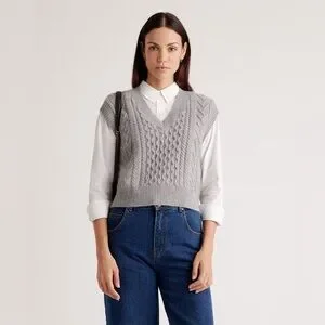 NWOT Quince Australian Merino Wool Cable Sweater Vest size M Color: Heather Grey
