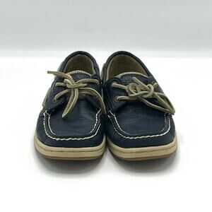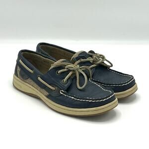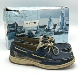 Vintage Sperry Top Sider Navy Leather Boat Shoes Size 5.5 with Original Box