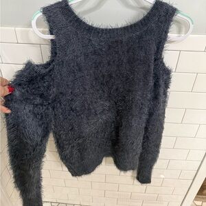 Moth by Anthropologie Charcoal Off-the-Shoulder Fuzzy Sweater - M