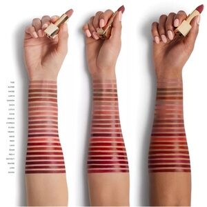 Experience high-impact color in a single swipe with this ultra-hydrating lipstick that delivers a luxe, satin crème finish. The creamy lipstick features innovative vegan waxes for a smooth texture that glides on seamlessly and melts instantly into lips. Infused with Mango Seed Butter, Avocado Oil, and Argan Oil, the formula conditions for soft, smooth lips and comfortable wear that feels truly weightless. The custom bullet shape allows for precise application.