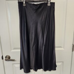 Luxurious black silk maxi skirt. Smooth and stylish. Ideal for versatile wear.