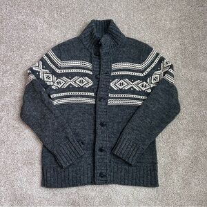 AMERICAN EAGLE Cardigan Sweater Gray White Sherpa Cotton Wool Blend Size L Ski