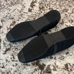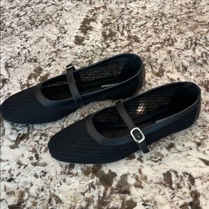 Size 10 Black Brynn Leather and Mesh Flats. Round toe slip on flat with adjustable buckle closure. Has padded insole