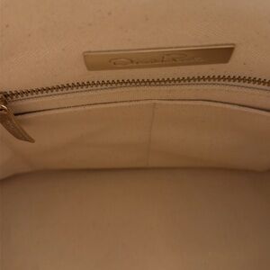 Oscar de la Renta (Neiman Marcus/Target) canvas floral print tote. Shades of beige and cream, this tote is extra sturdy. Open space inside with two zip pockets and four slot pockets. Gathered sides, strong handles. Measures approximately 13.5 x 9.5 x 7 inches.