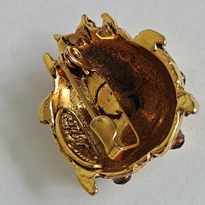 Adorable vintage 80s, yellow gold tone ladybug brooch from Rene Gouin Paris designer , the brooch is accented with sparkling purple amethyst glass accents. Perfect for adding a touch of retro charm to any outfit.