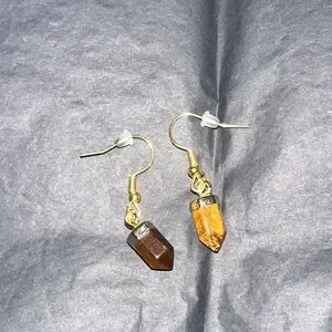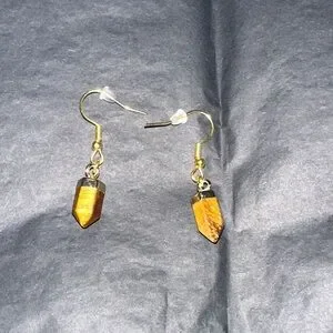 Gold metal and tigerās eye mini tower dangling earrings with backings.