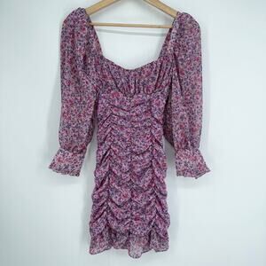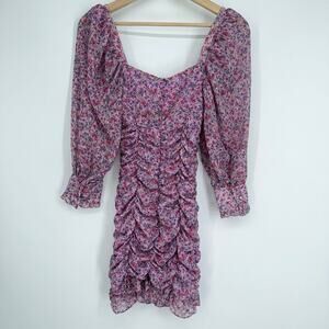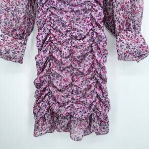 ZARA Floral Print Draped Long Sleeve Ruffle Mini Dress Bloggers Fav Pink/ Purple