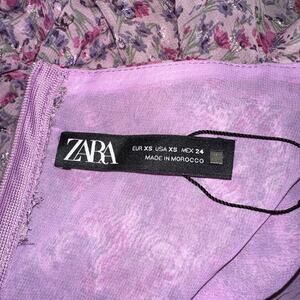 ZARA Purple/Pink Floral Print Draped Long Sleeve Ruffle Mini Dress Bloggers Fav