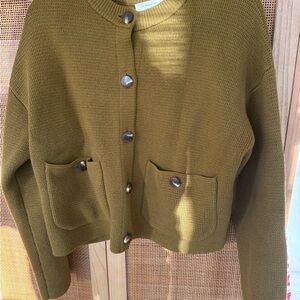 Sezane Olive Green Valerio Jacket Cardigan Wool Cotton size M EUC