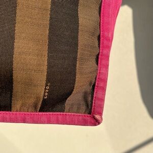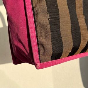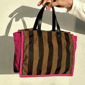 FENDI Fuchsia And Tobacco Pequin Stripe Canvas Bag