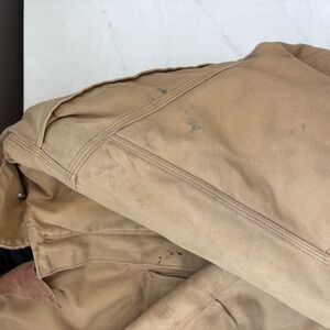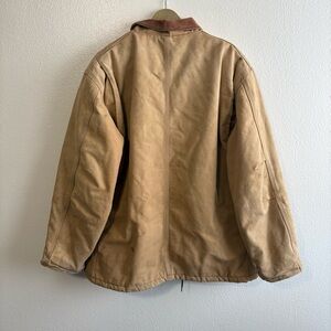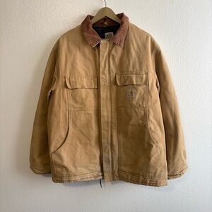 Vintage Carhartt Sz 44 Tan Corduroy Collar Canvas Insulated Work Jacket Workwear