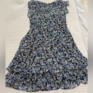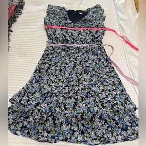 TOMMY HILFIGER Dress Chiffon Blue Pink Flowers Ruffled Sz 4 (Missing belt)
