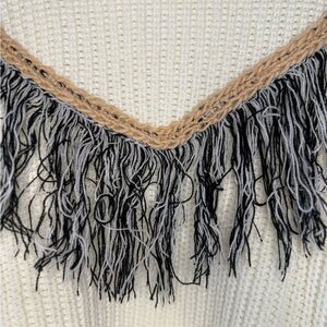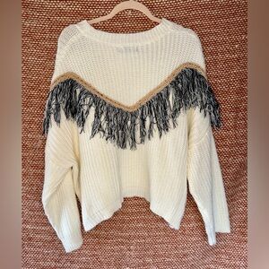 Mustard Seed Cream Sweater with Black Fringe