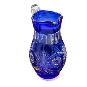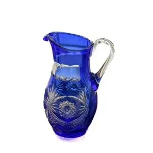 Bohemian Cobalt Blue Cut Crystal Pitcher | Hand Cut Czech Lead Crystal Barware