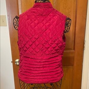 Stay stylish and warm with this vibrant red quilted vest. Perfect for layering, this vest adds a pop of color to any outfit.