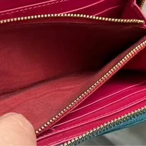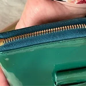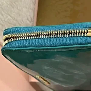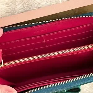This Miu Miu wallet, in excellent brand new condition crafted in a luxurious emerald green, features a sleek and streamlined design with a charming bow embellishment on the front. Made from smooth, glossy leather, it exudes sophistication and elegance, making it a perfect accessory for any occasion. Miu Miu long wallet green ribbon motif