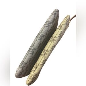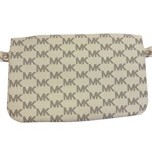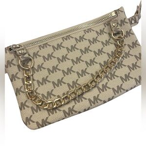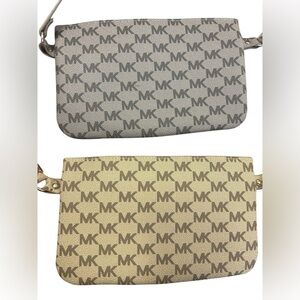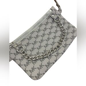 This Michael Kors adjustable belt bag bundle features two bags in Light brown and gray. Zipper front with chain accent. Clean interior. Excellent used condition. Synthetic Leather.