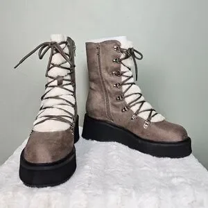 Journee Collection Womens KANNON Lace Up Vegan Fur Winter & Snow Boots TAUPE 7.5