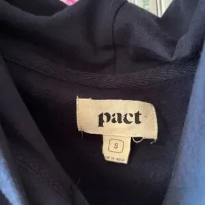 Pact Navy Blue Hooded Sweatshirt With Kangaroo Pocket Size Small Unisex. Sustainable facric. Organic cotton. Men's sizing but unisex. This would be equivalent to a women's large/ extra large. Drawstring hood.
