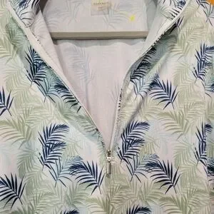 Stylish pullover with a leaf print design. Features a quarter-zip front. Perfect for casual wear.