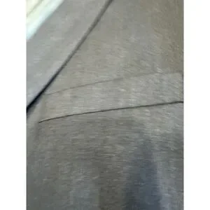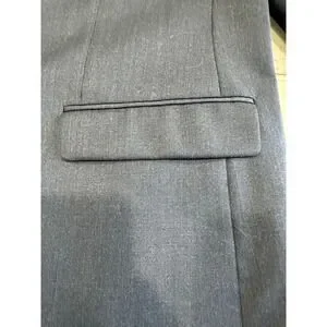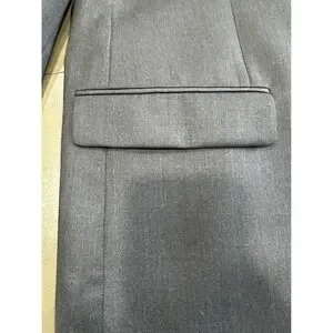 Calvin Klein blazer crafted from 100% wool in a versatile charcoal gray. This two-button suit jacket features a classic notched lapel, a welt chest pocket, and two front flap pockets. The sleeves are finished with four-button cuffs, and the interior is fully lined with multiple internal pockets for functionality. A timeless addition to any professional wardrobe, offering a sharp, tailored silhouette.