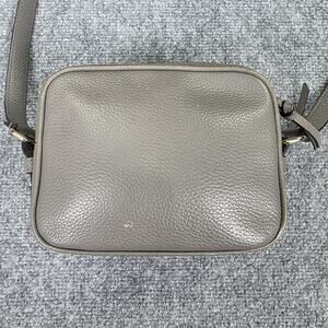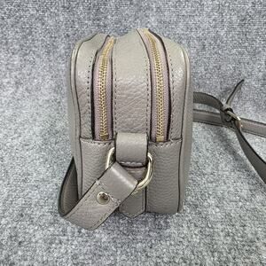 Classic Kate Spade camera-style crossbody in gray pebbled leather with dual zip compartments. Perfect everyday bag for errands, travel, or casual wear.