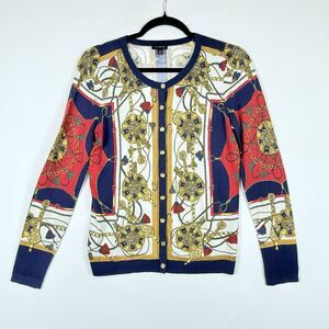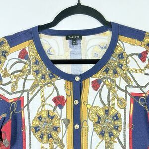 Talbots Womens XS Luxury Chain Equestrian Baroque Knit Cardigan Sweater.