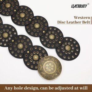 Unique Design: Each disc on the belt can be rotated at will, and there are many holes on each disc, thus providing a variety of different ways to wear and easy to adjust, put on and take off. This disc belt has a western and boho style, giving it a stylish and unique look that's perfect with jeans and dresses.
