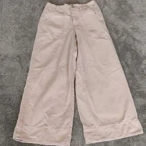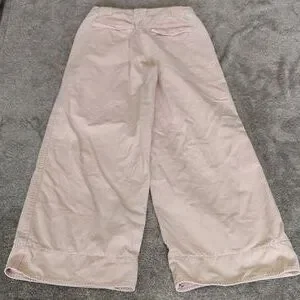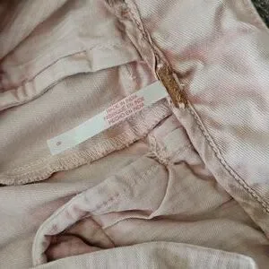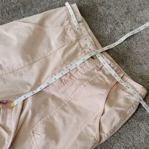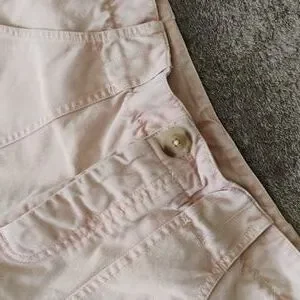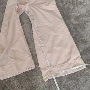 Light pink four pocket 100% cotton chinos with wide legs and wide cuff seams. Front patch and back flap pockets.
