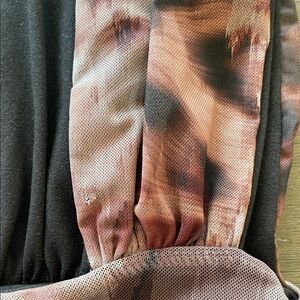 Sheer mesh fabric with knit lining, plenty of stretch