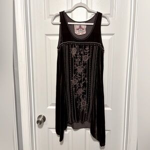 Elegant sleeveless dress with intricate floral embroidery. Perfect for any occasion.