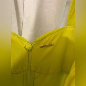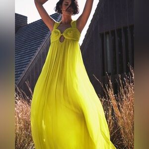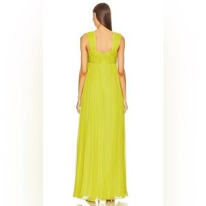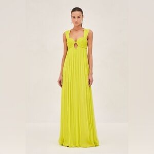 ALEXIS: The Bosnia Dress is an elegant choice for any special occasion. Its luxurious chiffon fabric is perfect for dancing the night away, with a chartreuse hue and delicate details. The keyhole cutout and other design details add an extra touch of sophistication.