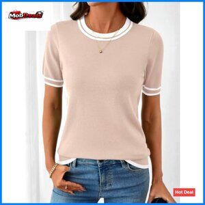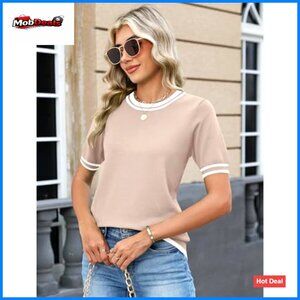 Lightweight Short Sleeve Pullover Sweater Crew Neck Summer Top S-XXL