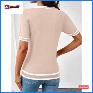 Brand new, never worn, and in flawless condition — this chic short sleeve sweater offers a light-weight, dressy-casual look perfect for office days, weekend outings, or versatile layering. The fit is slim and comfortable with a fun color-block detail.