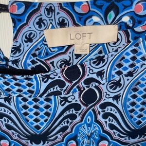 LOFT Blue and Blackberry Patterned Blouse Small