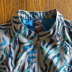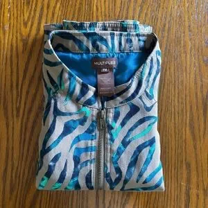 * Style profile: Multiples Vest Women's Size M Petite Khaki Green With Blue/turquoise Pattern